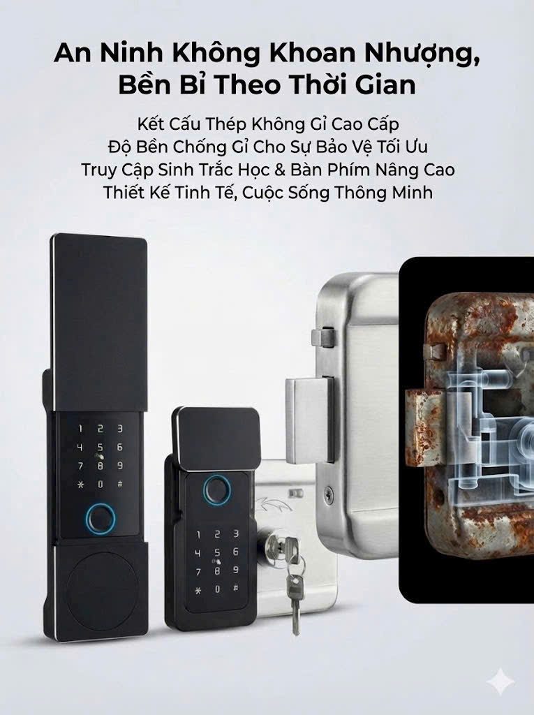 - 6 cách mở khóa: App Bluetooth, vân tay, mật mã, thẻ từ, chìa khoá cơ và remote